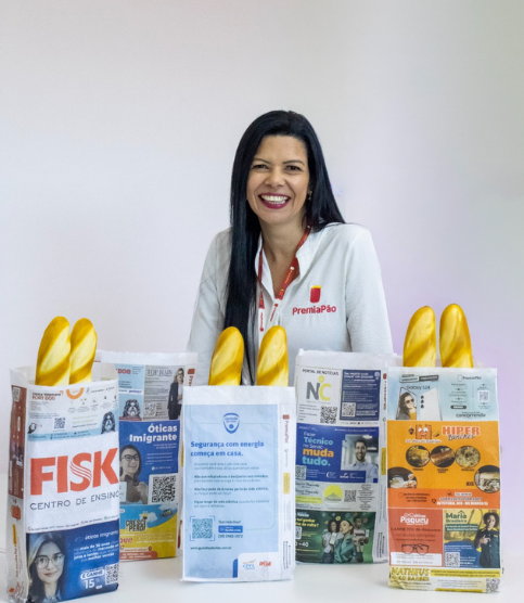 Para Aline, a grande força da franquia está na proposta de publicidade em sacos de pão, um formato acessível, sustentável e que chega diariamente à mesa das famílias.